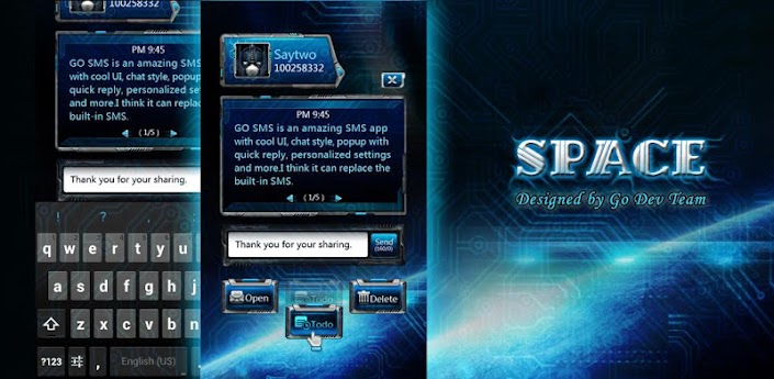 Free Download GO SMS Pro Space Popup Theme v1.1 apk
