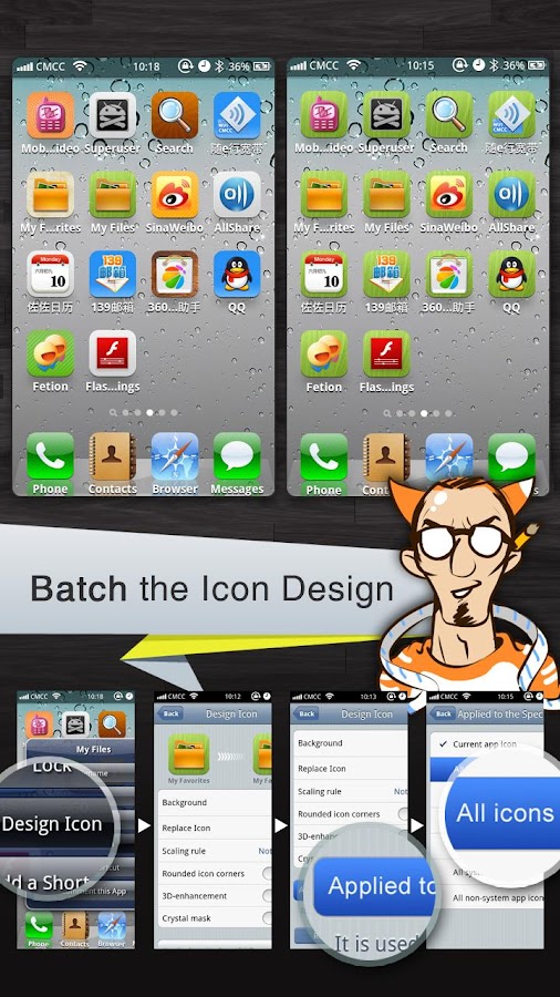 * Enhanced icon design; you can apply one design to a specific category of icons, not only one icon.
