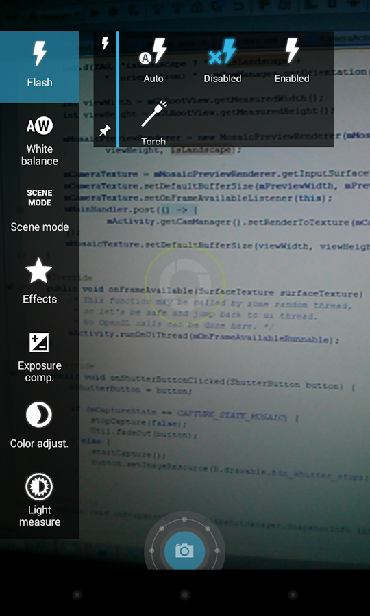 - A PicSphere mode, open-source replacement of Google’s PhotoSphere, to do 360° sphere shots