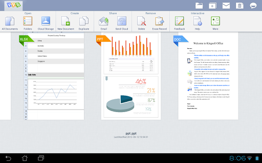 Kingsoft Office is the only mobile Office with full-features FREE. Support for running on Android 2.1 and above system. User-friendly & nice UI interface! Users from over 200 countries and regions around the world are using it. The Average Rating of Kingsoft Office is up to 4.6 stars! Whether in a small cell phone screen or on a large screen on the Tablet, Kingsoft Office has a superior performance!