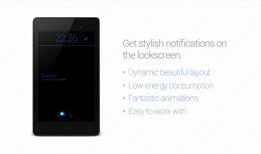 Overview: You will never miss a notification again! Knock²+ presents stylishly the notifications on the lockscreen. Thanks to the innovative power-saving modes your battery charge is used to a minimum.