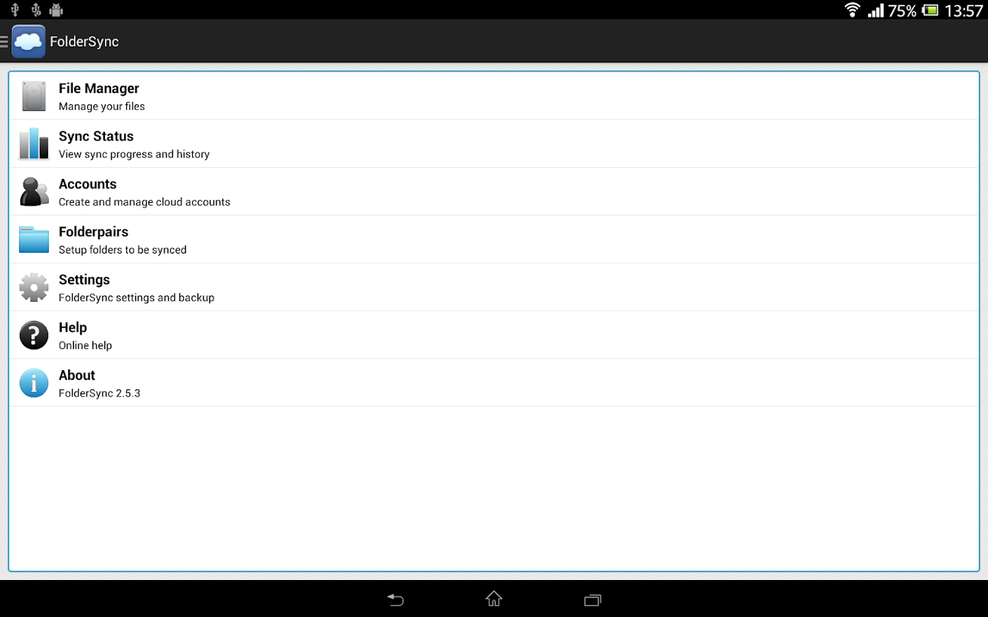 Overview: FolderSync is a application that enables simple sync to cloud based storage to and from local folders on the device memory card.