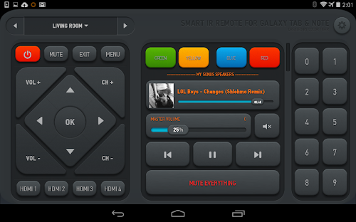 Smart IR Remote - AnyMote v2.2.5b Requirements: 4.0.3 and up Overview: Smart IR Remote, the best InfraRed remote app on Google Play, is now back, and better than ever! With the largest number (and best combination) of features, most beautiful UI, simplest user interface and app flow, and more than 500.000 supported devices (adding hundreds more every day), Smart IR Remote is simply the best IR Remote app out there! Now compatible with all Samsung tablets and notes carrying an IR Blaster, as well as all similar HTC devices. Compatible with: Samsung Galaxy Tab , Samsung Galaxy S4, Samsung Galaxy Note, HTC One, and all other variations carrying an InfraRed Blaster from Samsung and HTC. !! EMAIL US WITH ANY QUESTIONS OR PROBLEMS YOU MAY HAVE, WE'D BE MORE THAN HAPPY TO HELP YOU.