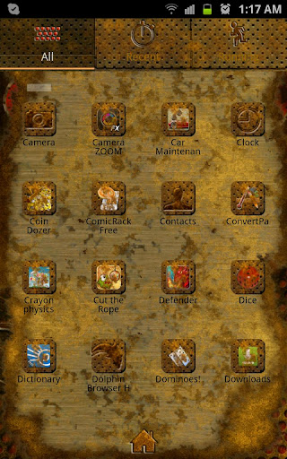 2. To apply the theme within GO Launcher EX: Menu -> Themes -> Choose “Rust” theme.
