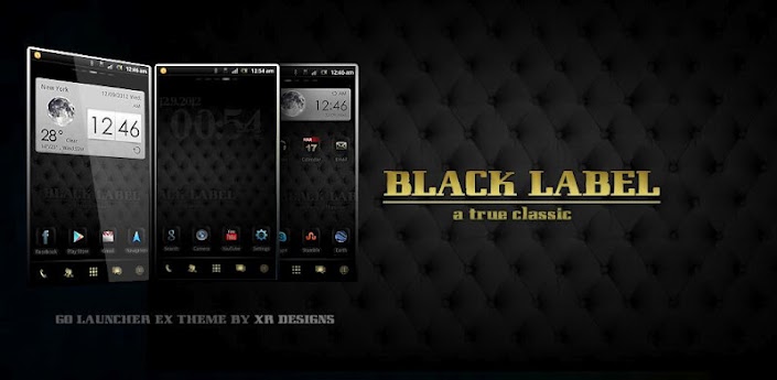 The Black Label Theme, a Luxury, stylish and clean design for GO Launcher EX, and Get a complete makover for your smartphone with a brand new design of icons, wallpaper, folders interface and app drawer – all at once.