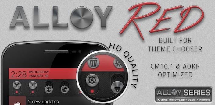 >> Welcome to AlloyUI Red, a Theme Chooser theme with a dark metallic mix of buttons, sliders, checkboxes and more. Alloy takes Android’s “Holo” style user interface and makes it more appealing by using design elements such as 3D style perspectives, new bevels/edges, ambient lighting and gradients.