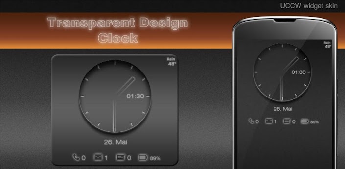 Here you get the Transparent Design Clock uccw skin with glow effect.