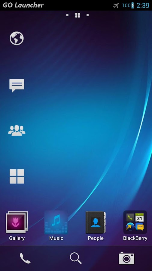 2. Add icons ‘Google’ search and ‘Camera’ in the dock. (BlackBerry only has 3 icons icons in dock: Phone, Search and Camera)