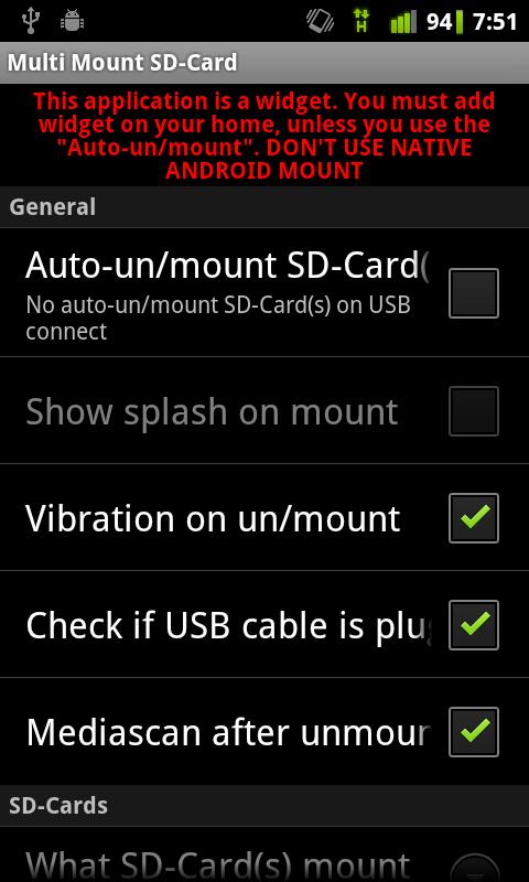 • Choose what sd-card is mounted (for mobile with 2 sd-card)