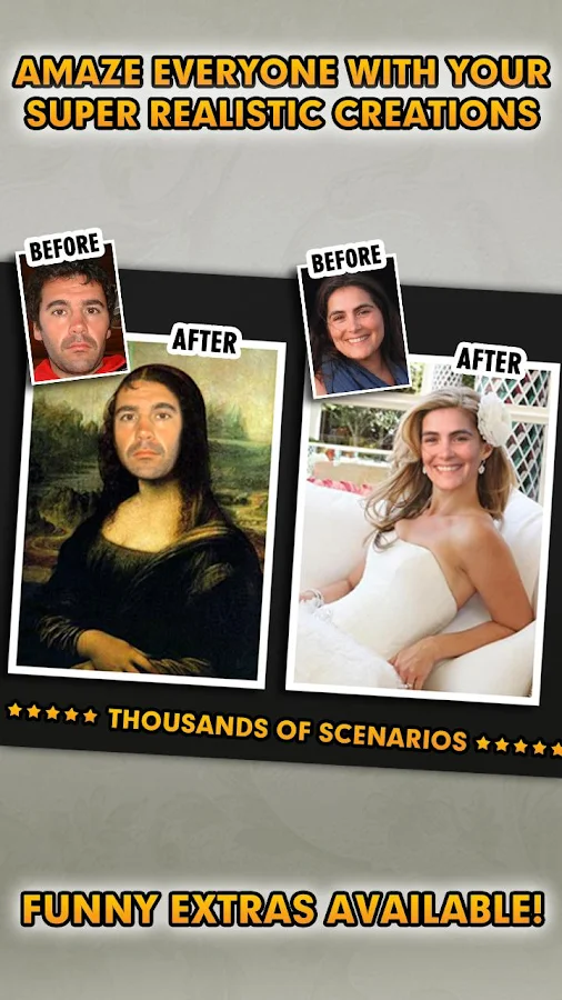 Overview: Haven’t you ever wanted to see what you’d look like as a movie star, a supermodel or a rock band member? Well now you can with FACEinHOLE super realistic results. Amaze your family and friends!