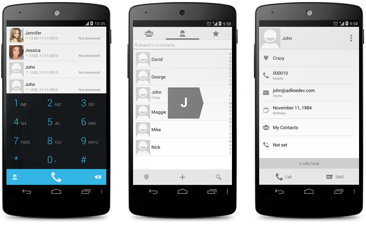 Overview: The Newest Android 4.4 KitKat Style Theme for ExDialer.The theme is fully repeats the design of Android 4.4 KitKat dialer with its transparency and colors.
